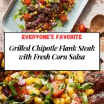 Grilled Chipotle Flank Steak with Corn Salsa is a smoky, juicy, and zesty Tex-Mex main course perfect for summer entertaining or a quick weeknight dinner. The flank steak is marinated in a flavorful chipotle and chile lime seasoning, then grilled to perfection and topped with a fresh, charred corn salsa featuring poblano, jalapeño, cherry tomatoes, and cilantro for a vibrant and delicious meal.