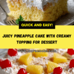 This Easy Juicy Pineapple Heaven Cake is a light and fluffy dessert bursting with tropical pineapple flavor. Made with angel food cake mix and crushed pineapple, topped with a creamy mixture of whipped topping, vanilla pudding, and more pineapple, it’s perfect for potlucks, BBQs, or any sunny occasion. Garnished with maraschino cherries and shredded coconut, this cake is a delightful treat that tastes like a tropical vacation in every bite.
