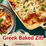 This Greek Baked Ziti Recipe yields enough to serve 6 to 8 hungry people, making it perfect for families or small gatherings. The active prep and cooking time combined is about 50 minutes, which includes sautéing, making the sauce, and assembling the dish. You’ll want to allocate 20 to 25 minutes for baking, plus an additional 10 minutes to let it rest before you dig in. Altogether, the total time from start to enjoying this comforting meal is approximately 1 hour and 20 minutes.