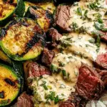 This Grilled Steak Bowl with Sauce & Grilled Zucchini Bliss features perfectly grilled steak paired with tender charred zucchini, served over fluffy rice or creamy mashed potatoes, and topped with a tangy herb sauce. Easy to prepare in under 40 minutes, this recipe offers a balanced and flavorful meal perfect for a hearty lunch or dinner.