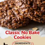 These classic No Bake Cookies are rich, chocolatey, and loaded with creamy peanut butter and oats. Ready in under 20 minutes, they require no oven and are perfect for a quick and easy treat that hardens as it cools, delivering a chewy, satisfying texture.