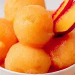 Step 6: Scoop into bowls or pretty cups and enjoy this fresh, fruity, dreamy Peach Sorbet Recipe!