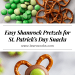 These festive Shamrock Pretzels are a fun and easy St. Patrick’s Day treat featuring a crispy pretzel shamrock shape, topped with melted Rolo candies and vibrant green M&Ms. With just a few simple ingredients and minimal oven time, these sweet and salty snacks come together quickly, perfect for any celebration or quick indulgence.
